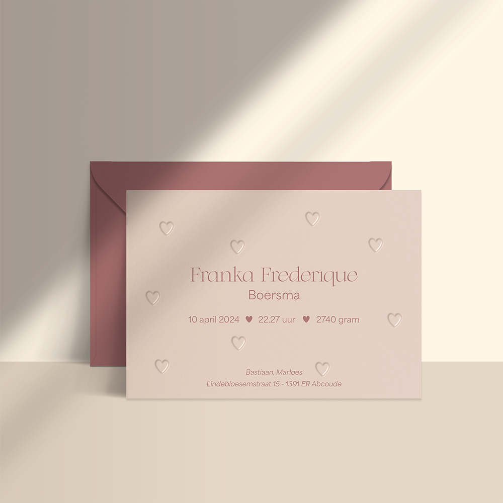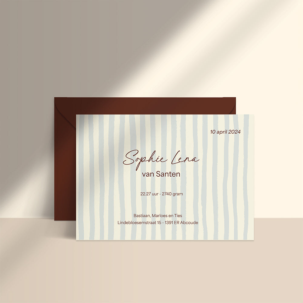 Warm, zacht en vol karakter. Onze geboortekaartjes combineren moderne eenvoud met ambachtelijke druktechnieken. Elk ontwerp straalt kwaliteit uit en is met oog voor detail samengesteld. Met zachte kleuren, heldere lijnen en ambachtelijke druktechniek vormt deze collectie de basis van onze stijl. Elk kaartje straalt rust en verfijning uit en is ontworpen voor ouders die houden van een tijdloos en stijlvol ontwerp.
