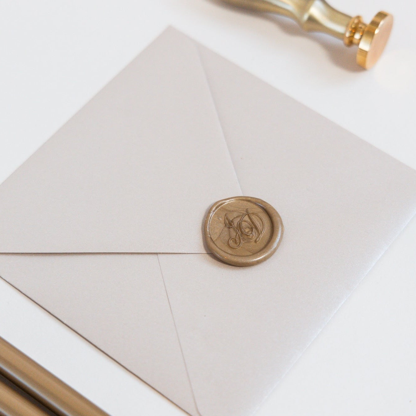 Personaliseer je bruiloft uitnodiging met jullie gepersonaliseerde lakstempel. Met deze stijlvolle lakstempel zet je de toon voor jullie speciale dag!
