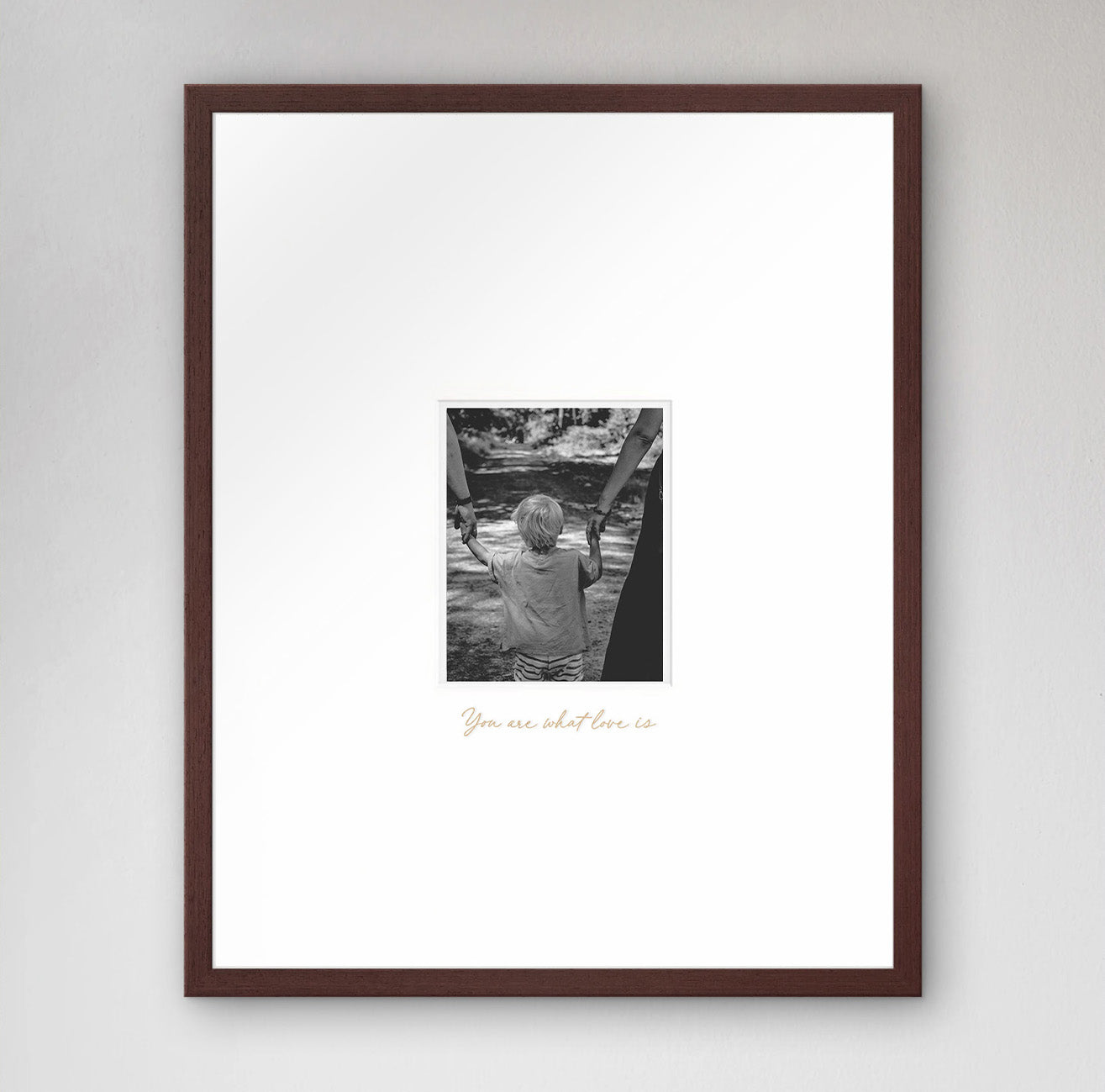 Onze passe-partouts worden met zorg gemaakt van hoogwaardig museumkarton en zijn bedrukt met de quote ‘you are what love is’ in klassiek goudfolie. Een subtiele maar betekenisvolle toevoeging aan je interieur. Een dierbare herinnering om elke dag van te genieten.